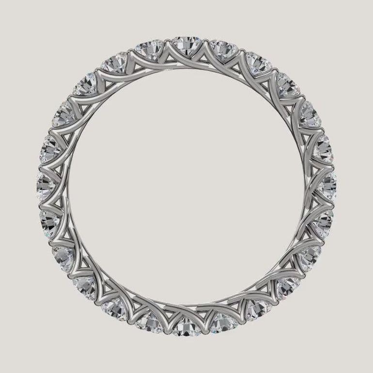 This elegant Diamond Eternity Band features brilliant round diamonds set in a continuous loop of radiance. Crafted in yellow gold, the intricate lattice gallery adds a touch of artistry and lightness. Designed for maximum brilliance from every angle, it's perfect for weddings, stacking, or solo wear. A timeless symbol of love, crafted with exceptional detail and lasting beauty.