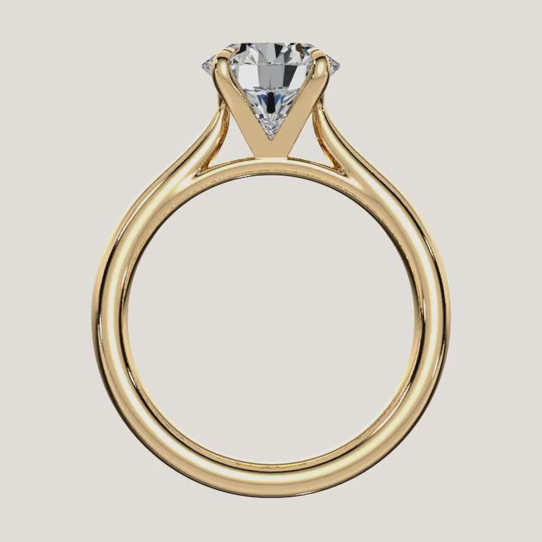 A design that rises with intention—The Solienne features an airy cathedral silhouette that lifts the center stone with strength and grace. Beneath it, our signature Vowpoint™—a tucked-away triangle-cut diamond—honors the vow only the two of you will know is there.